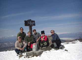 左上:縞枯山をバックに 右上:茶臼山山頂にて